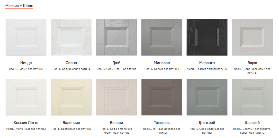 - Материал фасада: Массив + Шпон